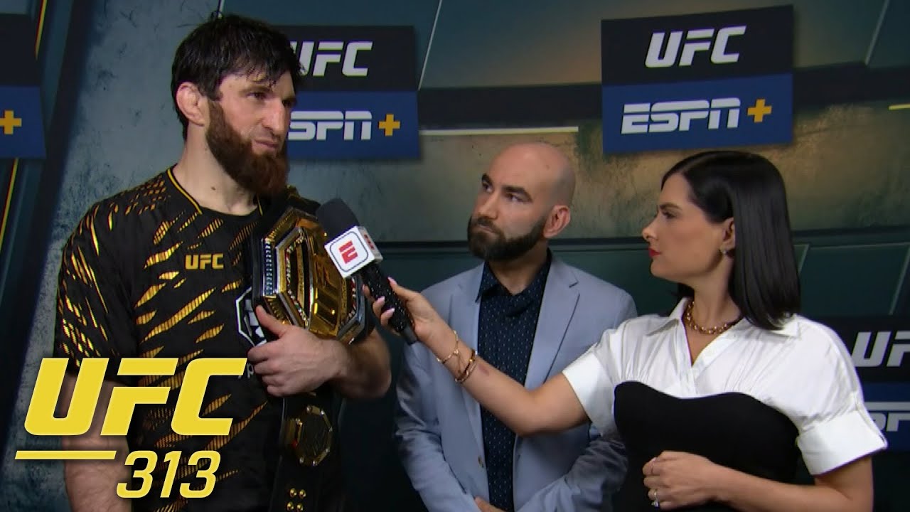 Megan Olivi interviews new light heavyweight champion Magomed Ankalaev after his win vs. Alex Pereira at UFC 313.