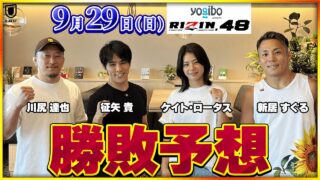 RIZIN 【RIZIN.48】サトシ vs グスタボ、井上 vs スーチョルの2大タイトルマッチをはじめ、伊澤 vs カンナ、萩原 vs 高木など注目カードを川尻、ケイト、新居、征矢が勝敗予想! RIZIN新章開幕!ライト級、バンタム級の2大タイトルマッチ、本大会での引退を発表した浅倉カンナと伊澤星花の対決、リベンジに燃える萩原京平と高木凌の対決など注目カードが目白押し!◆Yogibo presents RIZIN.48◆U-NEX... 2024.09.20 RIZIN